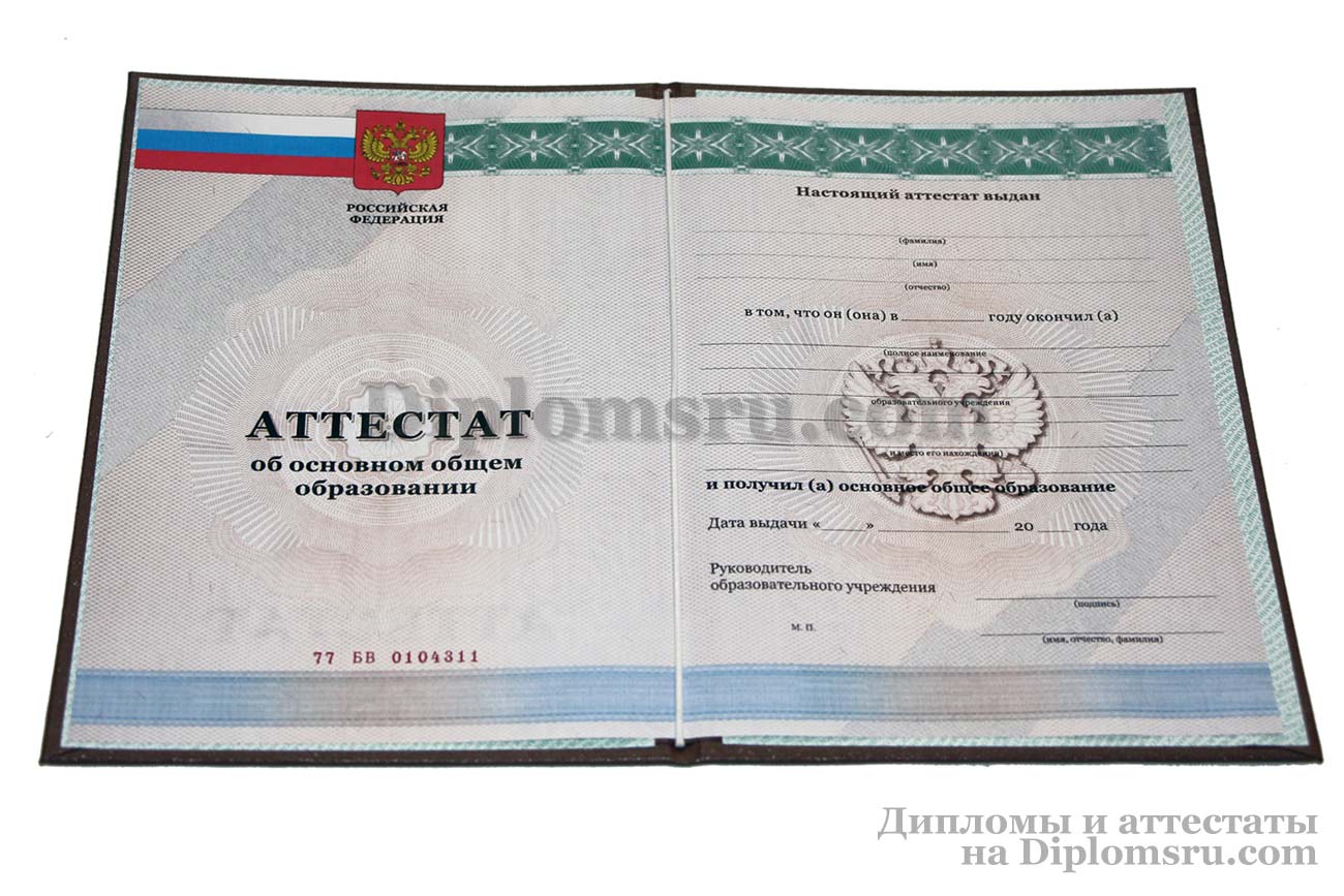 Аттестат школы за 9 класс, «Гознак» с QR кодом2021-2026 годов |